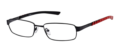 A full rim rounded unisex frame. The frame is a black metal, with a small cutout pattern on the temples. The rest of the arm features a raised red rubber deisgn to add a little edge and comfort to the frame. CODE: CBK938C2