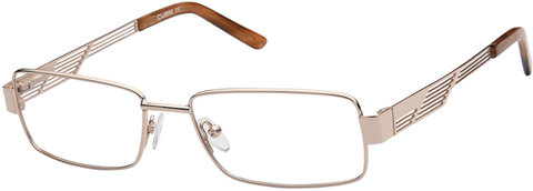 These fully rimmed light gold metal frames have a detailed cutout pattern on the arms, making them lightweight and classically professional.