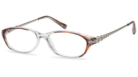 Ladies small plastic with crystal Brown front and ornate matt gold 130mm spring sides - trendy retro prescription glasses